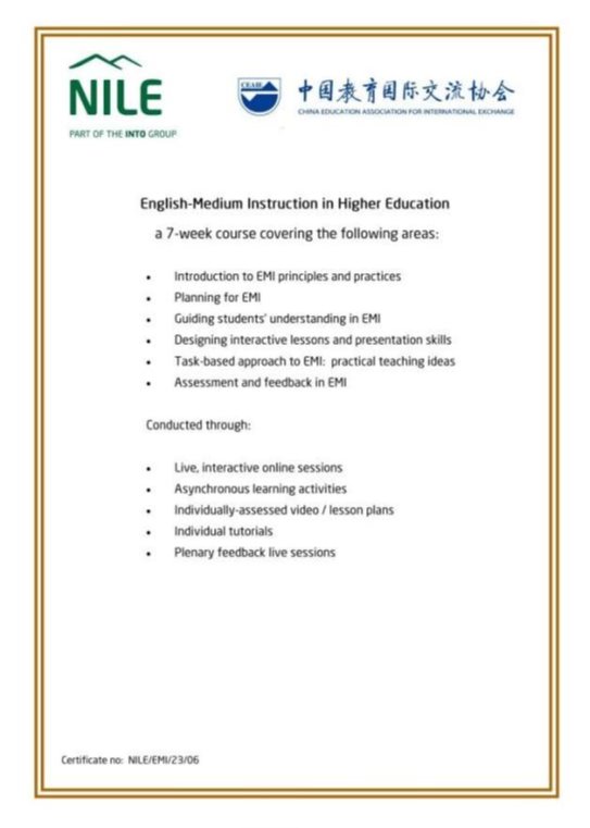 喜讯:EMI(English Medium Instruction)全英文授课教师能力提升项目顺利结业
