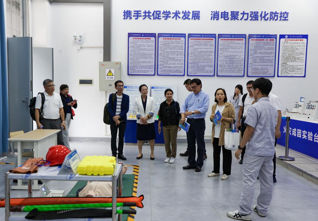 会后,泰国两仪集团、泰国东北皇家理工大学、广西南宁东亚糖业集团领导一行参访了我校龙狮文化馆、电力工程学院实训室、能源动力与环境工程学院实训室、“中文+技能”研修基地。