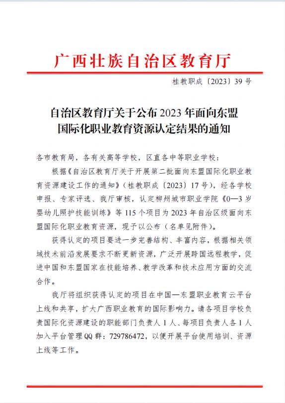 学校2项国际化培训资源包获得广西壮族自治区教育厅面向东盟国际化职业教育资源认定