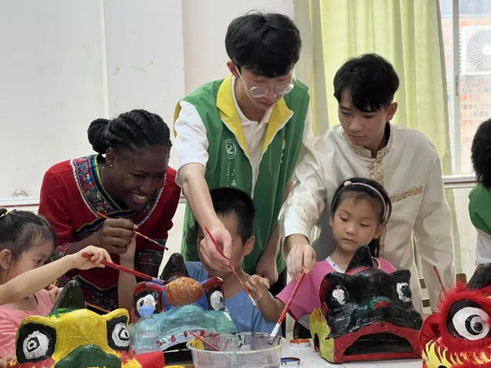 2023年7月,国际教育学院来自加纳、印尼、泰国的7名国际学生积极参加了以构建中国—东盟命运共同体为主题的“狮舞龙象 琴动东盟”中外大学生社会实践活动。活动中,国际学生与中国学生一同前往南宁市邕宁区七色光“青空间”、邕宁区龙象社区参访了红色教育基地,参加了古琴体验、狮舞彩带龙、中国大鼓、非遗剪纸、民族服装体验等丰富多彩的文化活动。