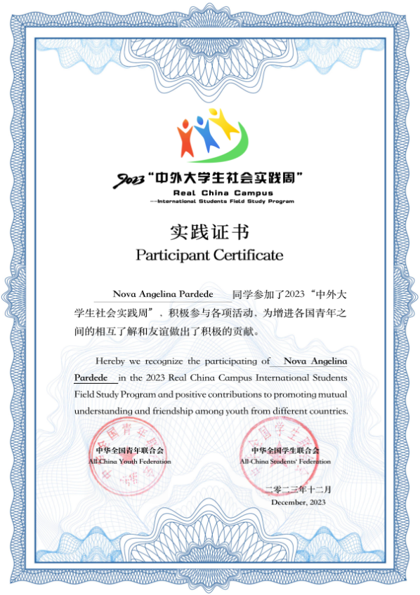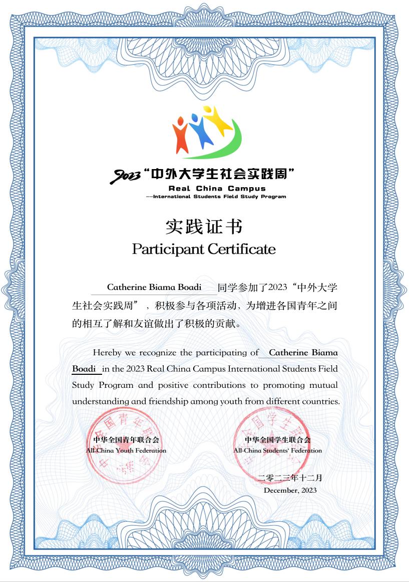 我院国际学生获2023“中外大学生社会实践周”实践证书