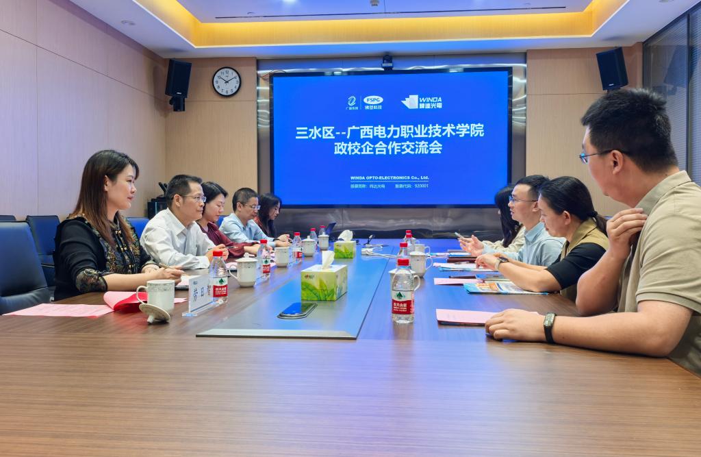 次日上午,调研组应邀参加三水区人社局组织的企业对接座谈会,与佛山纬达光电材料股份有限公司、轩金智慧能源科技公司开展交流。区人才服务办主任龙文辉,企业人资部门负责人詹彩花、李喆陪同参访并介绍企业情况,双方就订单班培养、人才双向交流及技术服务等合作领域进行深入对接。