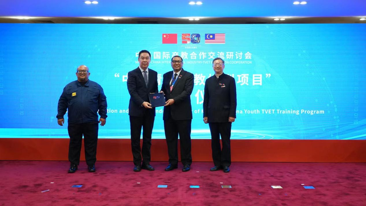 在授函仪式上,马来西亚州议员、全国职业工友会顾问莫哈末·沙布丁先生为我校徐武彬校长颁发“中马青年职教培训计划”邀约函。此项目旨在将马来西亚青年及企业人才送到中国职业院校接受“中文+技能”培训,为马来西亚培养更多满足企业需求的国际化高素质技术技能人才。